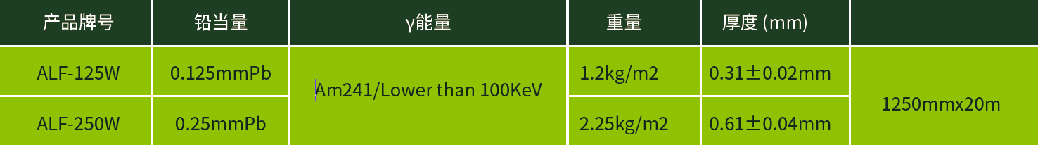 新型ALF-25W無鉛伽馬射線防護(hù)材料,針對241Am放射源,雙層下屏蔽性能可以達(dá)到90%。