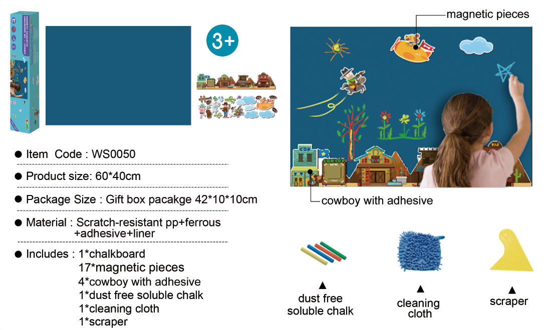 With interesting and beautiful designs, more cartoon chalkboard wall stickers are attractive to children. The surface can place fridge magnets on, and is written with chalk.