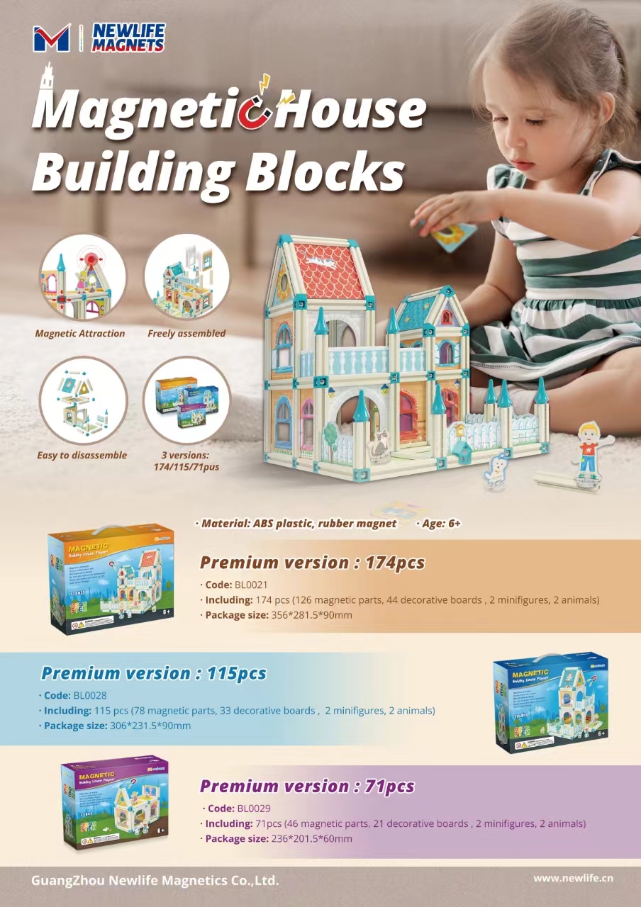 NEWLlFE Magnetic House Building Blocks is an educationaltoy specially designed for children. The product contains a total of 172 partsincluding magnetic parts, decorative boards, and minifgures, which can be used to freely build various scenes, such as houses, vehicles,buildings, etc. Let children grow up in play and cultivate spatial thinking for their future.