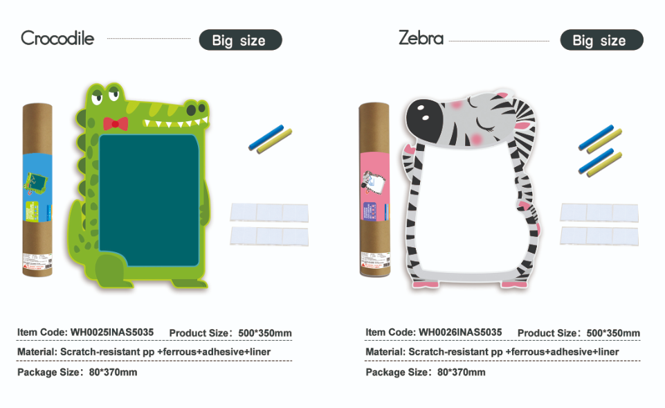 With interesting and beautiful designs, more cartoon chalkboard wall stickers are attractive to children. The surface can place fridge magnets on, and is written with chalk.